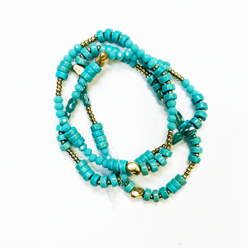 3 ROW CRYSTAL & GLASS BEADS MIX – TURQ